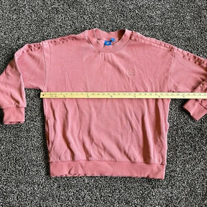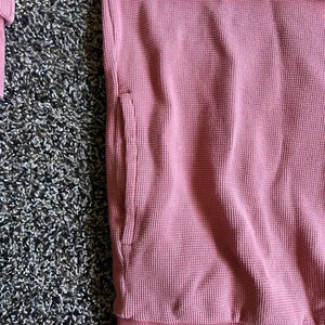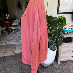 Adidas oversized top, size XL. Peach color with a waffle weave, classic adidas tone on tone stripes down the sleeves. This has two pockets, one on each side. In good pre loved condition, no rips or tears. There are two spots on the front , please see pictures. 100% cotton