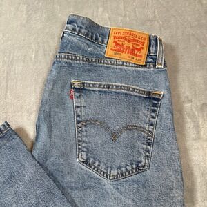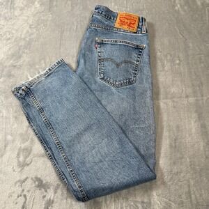 Levis Jeans Mens 34x32 505 Regular Fit Straight Leg Light Wash Blue Denim