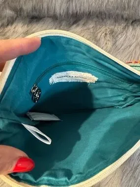 NWT America & Beyond Multicolor Embroidered Tote with Zip Pouch Set