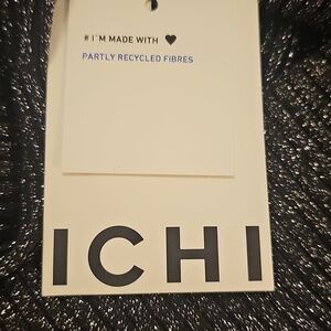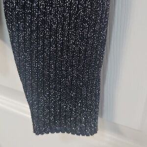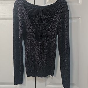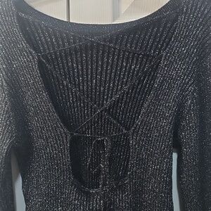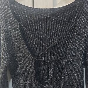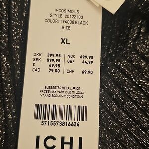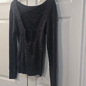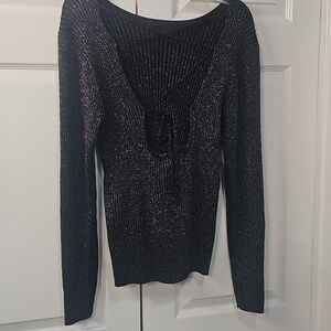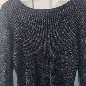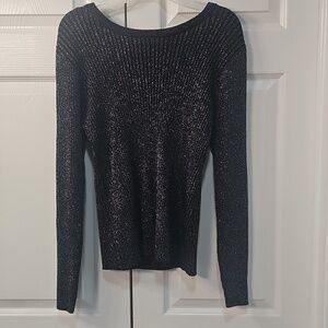 NWT ICHI Metallic Crossback Long Sleeved Ribbed Knit Metallic Black Top XL
