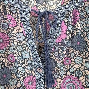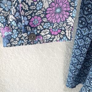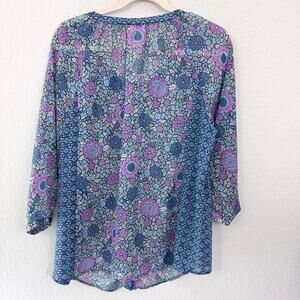 J. Jill Womens Blouse Top Size M Floral Flowy Sheer Boho Feminine Blue
