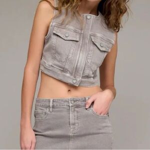 Upgrade your wardrobe with this stylish gray denim crop top vest. Perfect for any casual occasion, it offers a modern and comfortable fit.