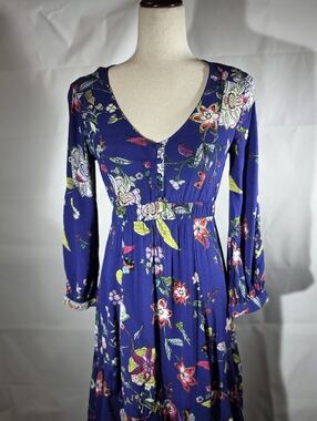 Maeve Anthropologie Maplewood Blue Floral Long Sleeve Button Front Dress XS