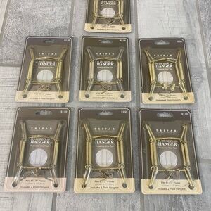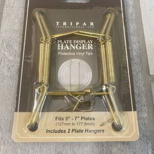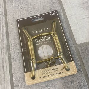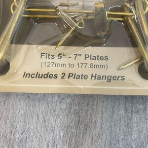 gold plate display hanger for 5"–7" plates. Durable gold finish for a polished presentation. Includes protective vinyl tips to safeguard plates. Easy-to-use design for elegant home accent displays. Set of 7.