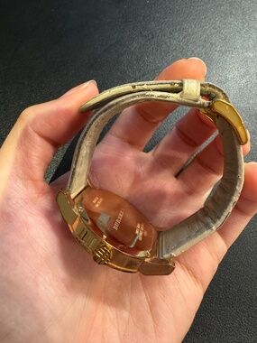 • Condition: The watch face and case are in great condition. Please note the leather strap shows wear/peeling on the edges and underside (see photos). The battery needs to be replaced. This is reflected in the price!