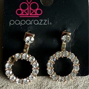 paparazzi Rose Gold and Clear Crystal Circle Drop Earrings