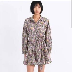 Chufy Forever Patagonia Ushi Mini Dress in Valdes Beige XS Long Sleeve Floral