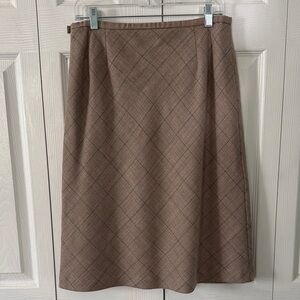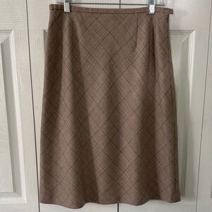 Vintage Pendleton Brown Plaid A-Line Skirt Sz 12 Made in USA. Classic Pendleton A-line skirt with subtle plaid weave. Neutral brown tones create a refined look. Soft drape and clean silhouette. Great for office or casual styling.
