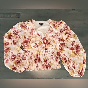 Elevate your style with this EXPRESS floral print women's top. Featuring a beautiful blend of pink, red and yellow, this top is perfect for any occasion.