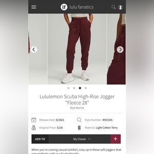 Lululemon women’s burgundy scuba joggers size 4