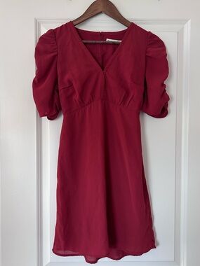 Elevate your wardrobe with this stunning crimson red mini dress from Abercrombie & Fitch. Featuring a flattering deep V-neckline, trendy puff sleeves, and a classic empire waist, this piece is the perfect blend of romantic and chic.