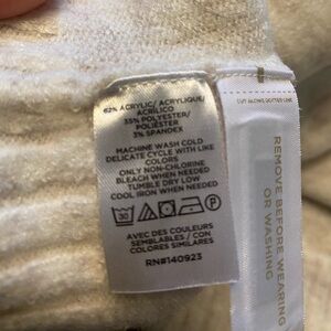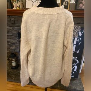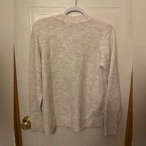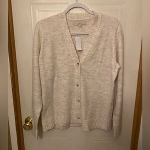 Classic LOFT cardigan in a soft cream knit. V-neck with button front and ribbed hem. Lightweight and easy to layer over tops. Neutral color for versatile styling. Beautiful and NWT. Size large, pit to pit 22 inches.