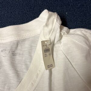 Lightweight white V-neck tee from Uniqlo. Short sleeves and relaxed silhouette. Breathable fabric for layering or solo wear. Simple versatile staple for everyday looks.