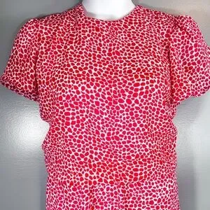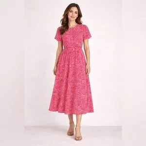 Joy Gordon Red & White Print Midi Dress Size 16 Short Sleeve Fit & Flare