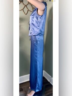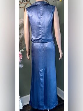 💎Brenda Knight for Free People Lace Maxi Skirt with pockets & Vest SET in a gorgeous Shiny Dusty Blue color Ret $378