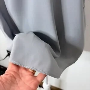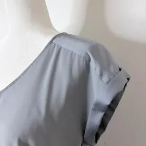 Express Women's Blouse Size M Gray Zipper V-Neck Cap Short Sleeve Silky Top