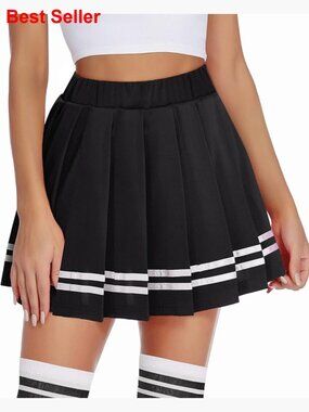 A classic pleated design featuring an elastic high waist for comfort and a true-to-fit feel. Made from breathable, sweat-absorbing fabric that maintains its shape and resists wrinkles, perfect for casual wear, cheer, athletics, or as a uniform skirt.