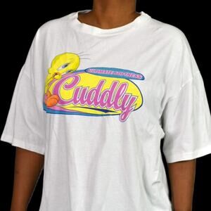Vintage Tweety Bird Tee Warner Bros T Shirt Graphic White Cotton Crew Neck XXL