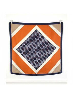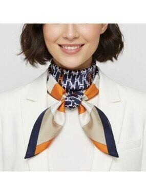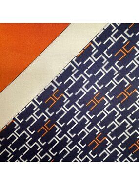 ⭐New Elegant Luxury Bandana Square Scarf Silky Satin Soft ORANGE BLUE Geometric