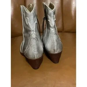 Free People Frontier Silver Leather Western Ankle Booties Size 36