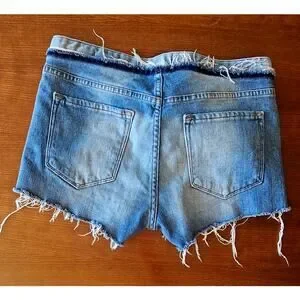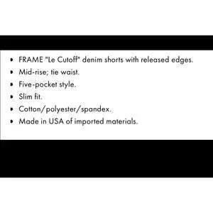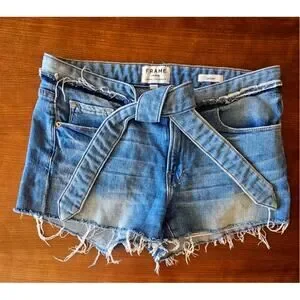 FRAME Jean Shorts Le Cutoff Tie-Waist, Denim, Released Edges, Mid Rise Sz 27