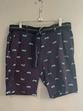 Knickerbocker Vintage Design shorts in deep navy. Classic casual cut with belt loops and zip fly. Versatile everyday piece with subtle vintage feel.