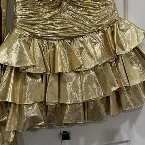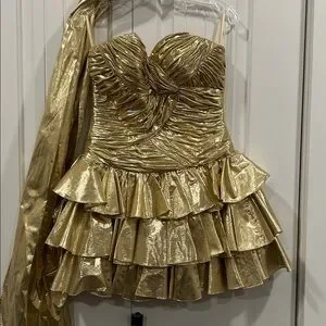Elegant metallic gold dress with scarf by Cache.