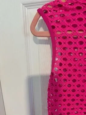 Cotton Candy Hot Pink Hooded Crochet Beach Coverup Size S