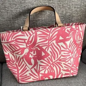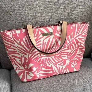 Kate Spade Grant Street Juno Mini Tote Pink and White Palm Leaf Print