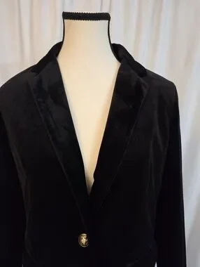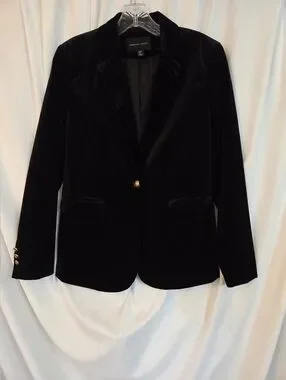 Adrienne Vittadini Black Velvet Single-Button Blazer Size S