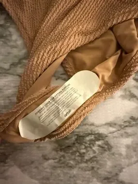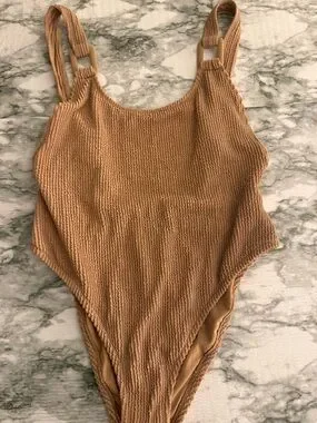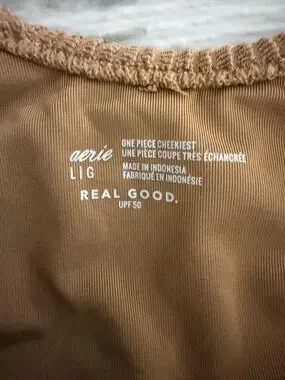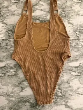 NWT Aerie Shimmery Crinkle Birthday Scoop Cheekiest One Piece w Buckle Tan large
