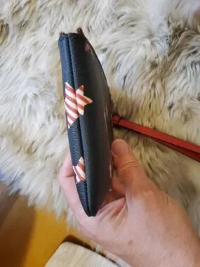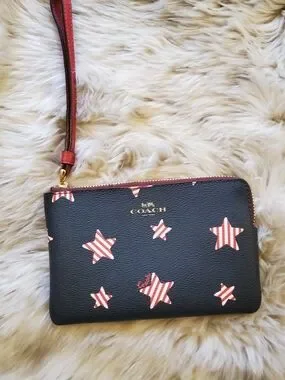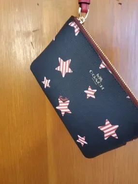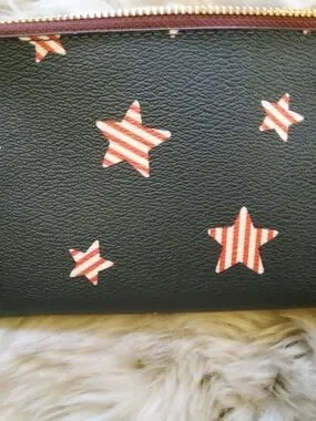 Gorgeous Navy Blue in Color with Red and White Stars Pebbled Leather Gold Hardware