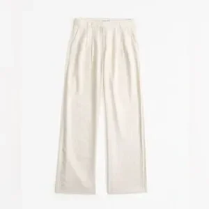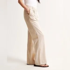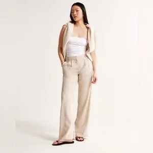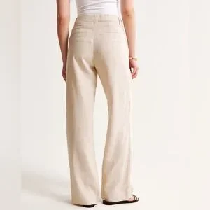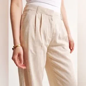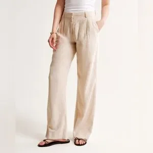 Our signature A&F Sloane Tailored Pant with a low rise, in our breezy linen-blend fabric, that’s perfect for dressing up or down. Featuring figure-flattering pleating details, a functional fly and pockets and a partially elasticated waistband for ultimate adjustability. The intended length hits the bottom of a flat shoe. Please reference our size chart to determine your perfect size and inseam!