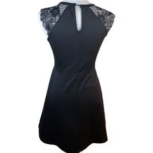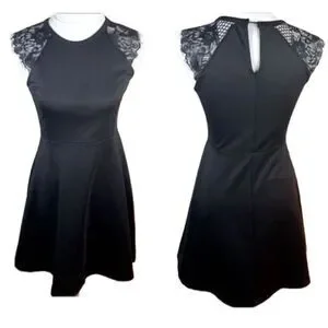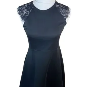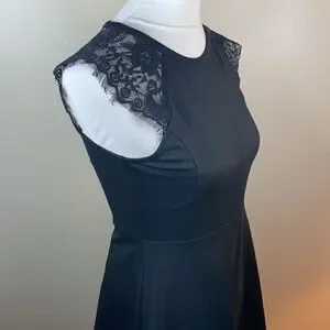 Anthropologie Elodie Fit & Flare Black Dress w/ Lace Floral Sleeves (Small)