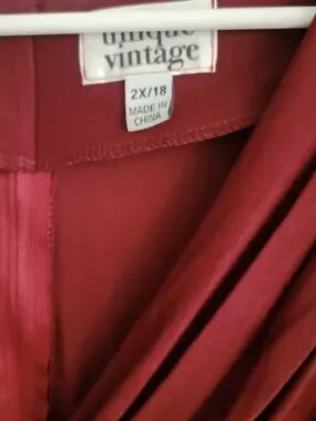 Unique Vintage delores swing dress. Wrap-style V-neck with gathered detail. Three-quarter sleeves with roll-tab. Soft, drapey fabric with a flowing silhouette.