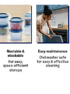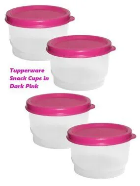Tupperware Brand Snack Cup containers w/ leak proof Seals. These mini but mighty storage containers let you easily take single servings of snacks, seasonings, or sauces anywhere. W/ their virtually airtight, liquid-tight seals, you can fill these containers w/ a snack & carry in a purse, briefcase or backpack & not worry about leaks. They're perfect for children's snacks or keeping track of small quantities in cupboard or fridge.
