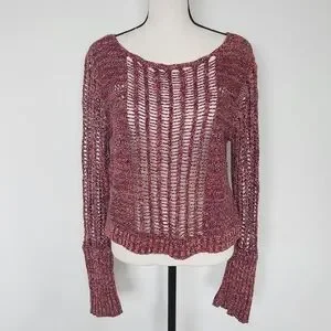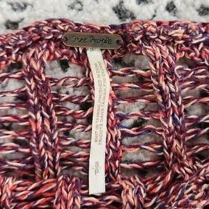 Free People Multicolored Open Knit Sweater Pull On Cropped Pink Red Purple *Size Small