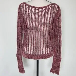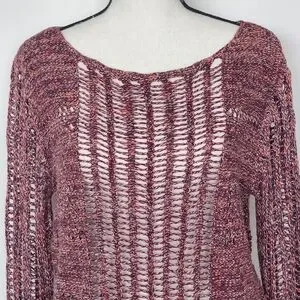 Free People Multicolored Open Knit Sweater Pull On Cropped Pink Red Purple Small