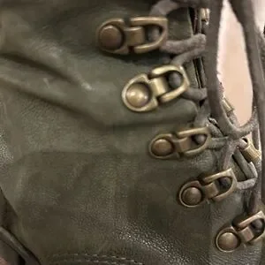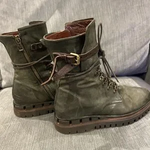 A.S.98 Olive Green Leather Lace-Up Ankle Boots with Brown Strap