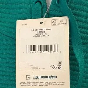 Melted Emerald DSG So Soft Ottoman hoodie with ribbed texture. Features a front pocket and cozy fit. Size XS. NWT