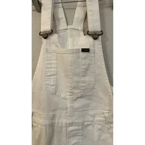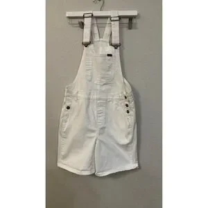 Lee Womens White Denim Overall Shorts Size S Stretch Bib Utility Summer 11233578
