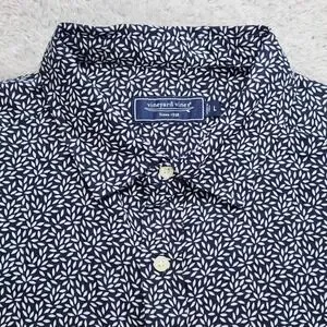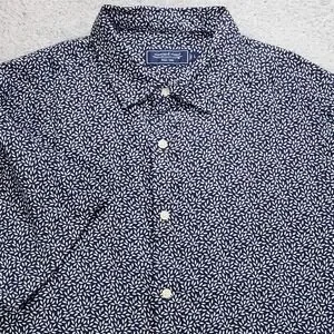 Vineyard Vines Linen Shirt Mens Large Blue Floral Short Sleeve Button Up Casual