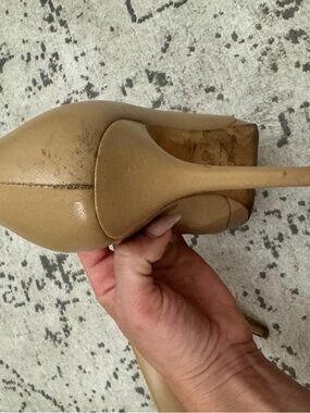 Jimmy Choo Beige Peep-Toe Leather Pumps
