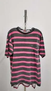 Vintage Maritime Striped Pocket T-Shirt - Pink & Charcoal (L)