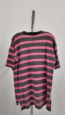 Add a touch of retro nautical flair to your wardrobe with this authentic vintage Maritime t-shirt. Crafted from a mid-weight, textured 100% cotton pique, this shirt features a bold horizontal stripe pattern in vibrant pink and charcoal grey. With its relaxed fit and classic chest pocket, it’s a perfect piece for 90s-inspired casual wear or beach outings.