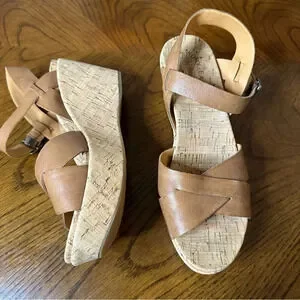 KorkEase Ava Sandals Platform Wedges Cork Tan Brown Heeled Sandal Camel Size 10