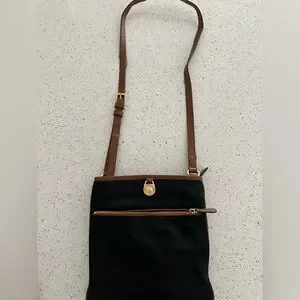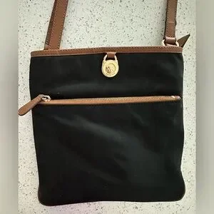 Michael Kors Black Nylon & Leather Trim Crossbody Bag – Gold Hardware