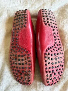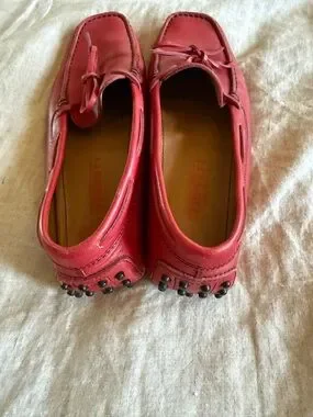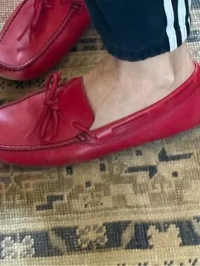 Leather driving loafers with knot-tie detail. Soft leather upper with stitched apron. Padded insole for comfort. Timeless, vibrant red finish.