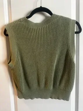 Vici Sage Green Ribbed Knit Sleeveless Vest