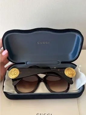 Gucci Brown Tortoiseshell Sunglasses with Gold Coin Medallions